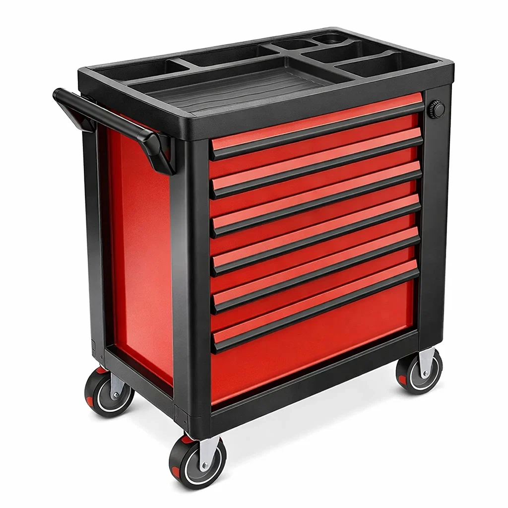 Carrello portautensili in Acciaio Rosso e Nero con Cassetti e Ruote
