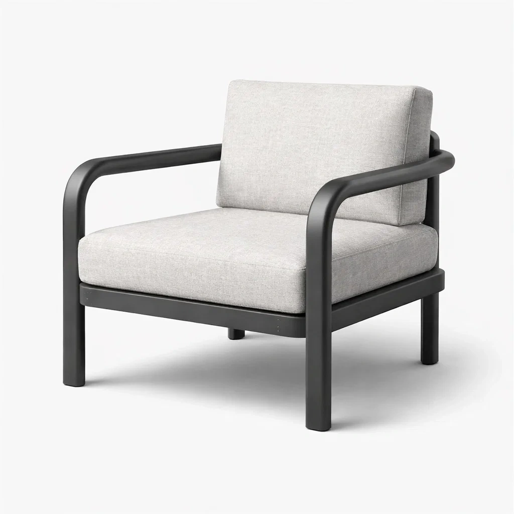 Poltrona in Metallo Verniciato e Tessuto Grigio con Braccioli