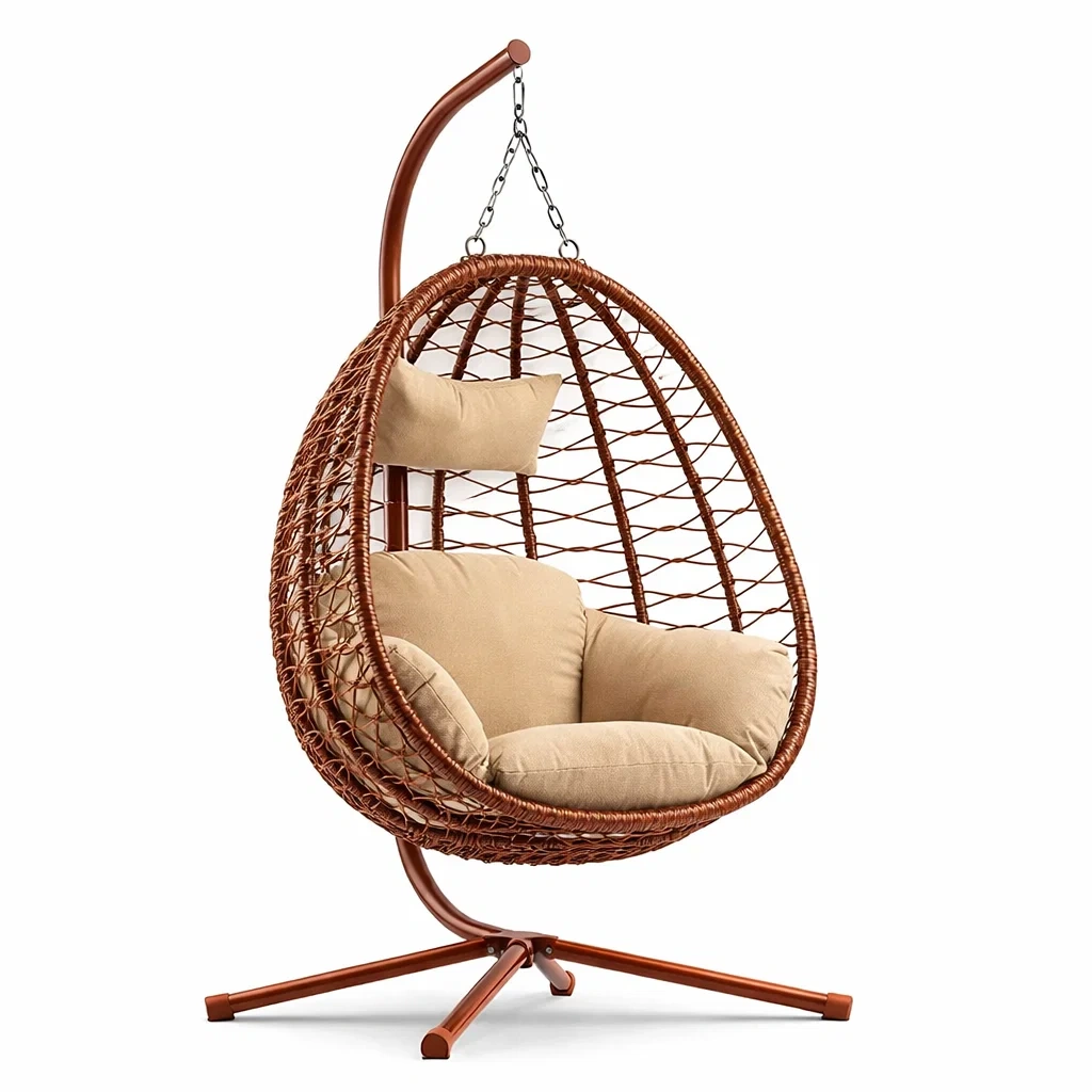 La poltrona sospesa a forma di uovo è realizzata con i seguenti materiali: