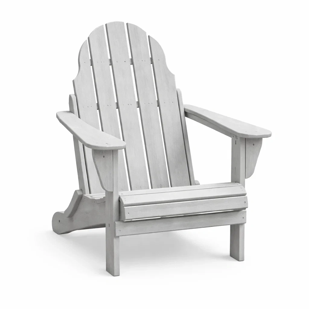 Questa sedia Adirondack è realizzata in legno massello di pino, noto per la sua resistenza agli agenti atmosferici. Presenta una struttura a doghe e un design tradizionale adatto per l'uso all'esterno.